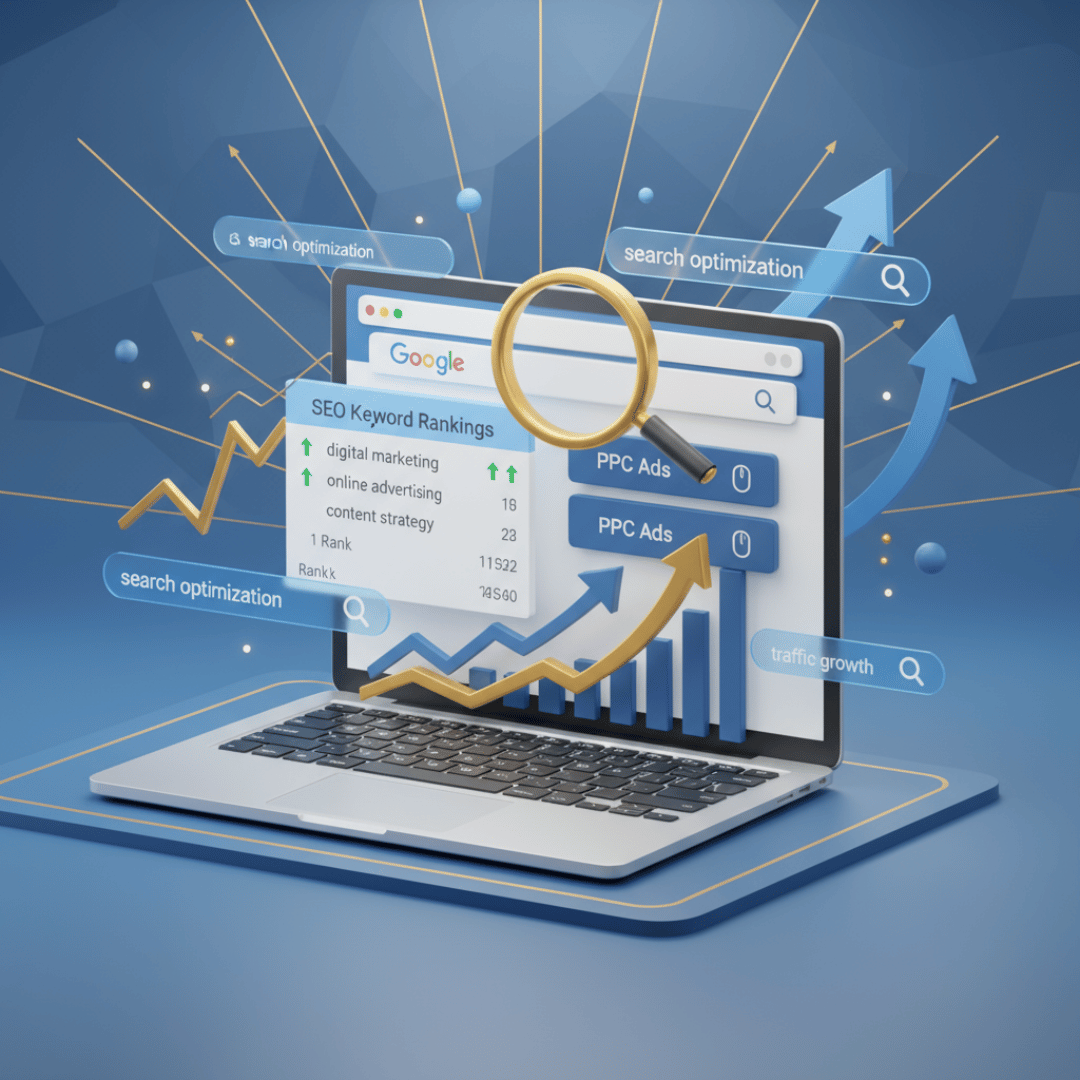 Search Marketing combines SEO (Search Engine Optimization) and PPC (Pay-Per-Click Ads) to make your business visible on Google. The goal is to drive qualified traffic, generate leads, and maximize ROI.